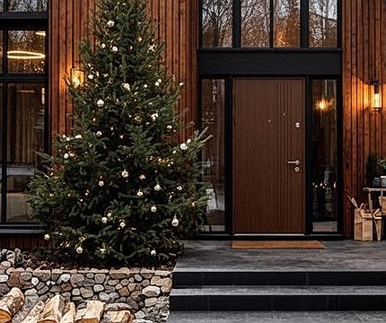 Теплая деревянная входная дверь с армированием двумя листами металла