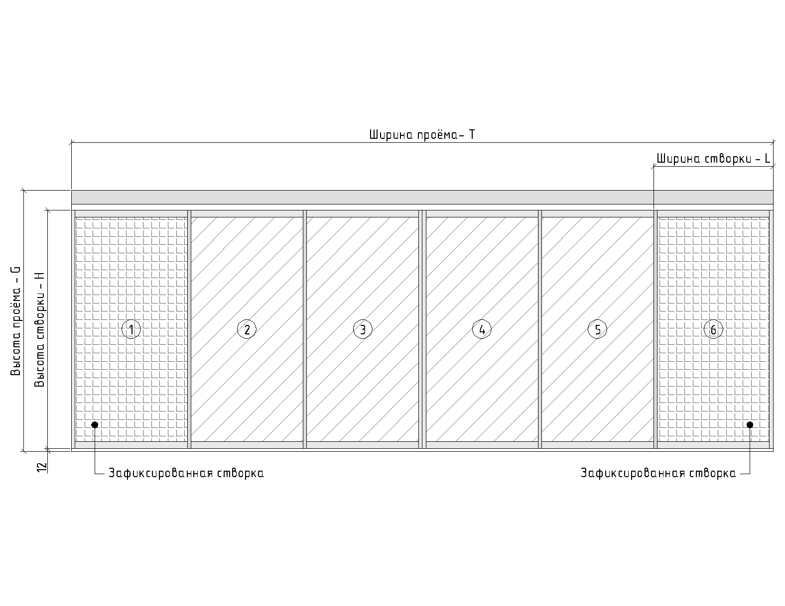 - Размерность: минимальный размер одной створки - 600 мм, максимальный - 1200 мм.